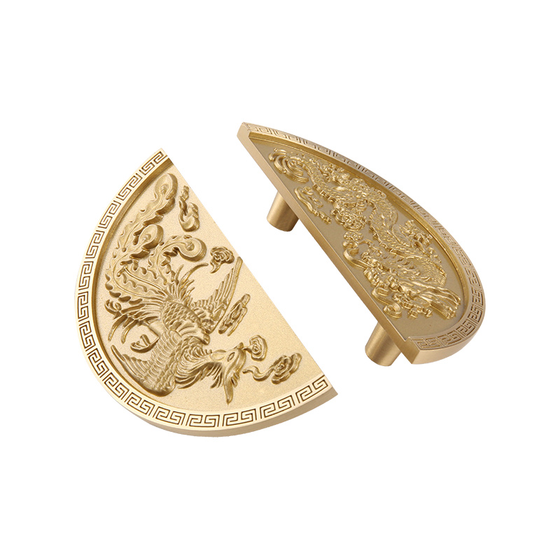 Dragon Phoenix-2 Brass Chinese Dragon Phoenix Mânerul dulapului este confecționat din toate materialele de cupru și are proprietăți de rezistență la coroziune superioară și anti-oxidare, ceea ce îl face mai durabil și mai durabil în decorarea mobilierului. În același timp, textura și luciul de alamă fac, de asemenea, acest mâner mai elegant și la modă. În ceea ce privește designul, mânerul adoptă noul model de dragon în stil chinezesc, ceea ce înseamnă noroc și noroc, adăugând un farmec al culturii tradiționale chinezești mobilierului. Modelele sunt rafinate și delicate, iar liniile sunt netede, arătând măiestrie și calitate excelentă. În plus, acest mâner este potrivit pentru dulapuri, dulapuri, sertare, dulapuri rotunde și alte mobilier. Fie că este vorba de stil de lux nordic ușor sau de stil tradițional chinezesc, poate fi perfect integrat în mobilier, injectând un temperament și un gust unic.
